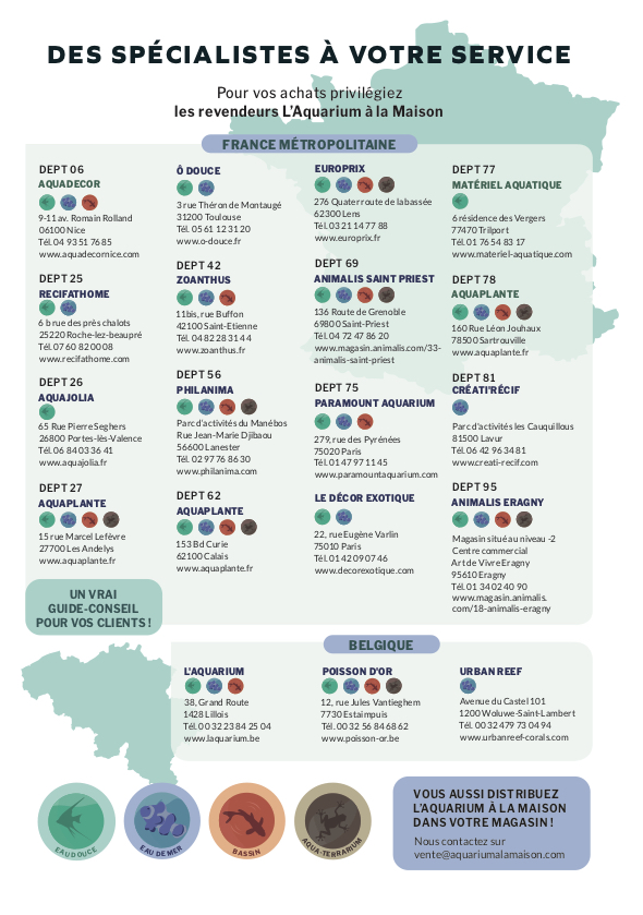 Pour ceux qui n’ont pas la patience d’attendre de le recevoir par la poste, il est possible de retrouver le hors-série auprès des revendeurs aquariophiles.