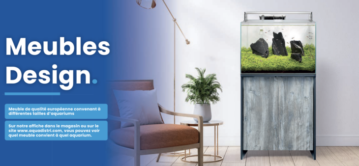 De nouveaux meubles design sont proposés par Aquadistri. Ces meubles de fabrication européenne disposent d’une porte et permettent de disposer votre aquarium à 87 cm de hauteur. Trois dimensions sont proposés : 30 x 30 cm, 40 x 40 cm et 45 x 32 cm. Ils conviennent parfaitement aux aquariums Scaper, QubiQ, Quadro de la marque, ou toute autre cuve. Deux coloris sont disponibles : « Grey/coco » et « Black/Pasa ».