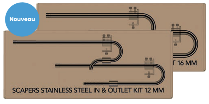 Les cannes d’aspiration et rejet de filtre (Scapers Stainless Steel In&Out Kit sont déclinés en 12 mm (pour tuyaux 12/16 mm) à un prix annoncé de 49,99 € et en 16 mm (pour tuyaux de 16/22 mm) à 54,99 €.